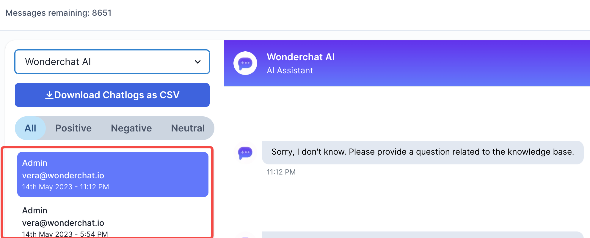 4. The names, phone numbers and emails of the users will be reflected within the chatlogs