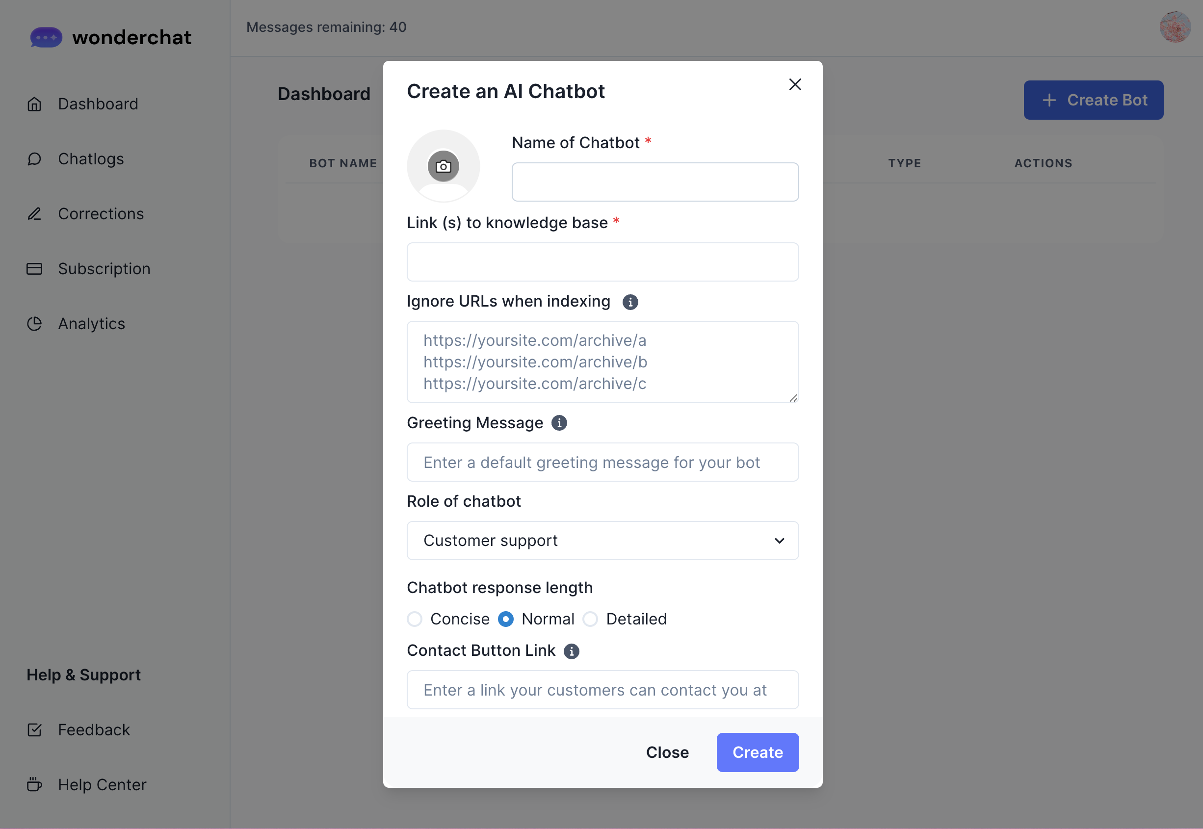 - Chat response length – Toggle the length of a Chatbot’s response