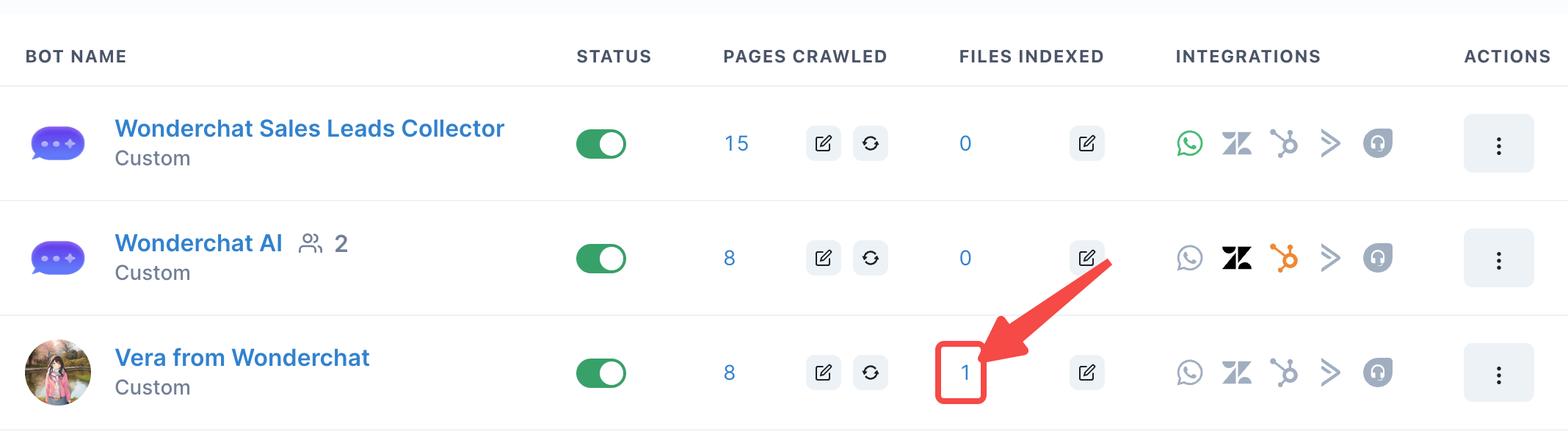 - Upon clicking the number of files indexed, it should show the title of the Youtube video you have uploaded
