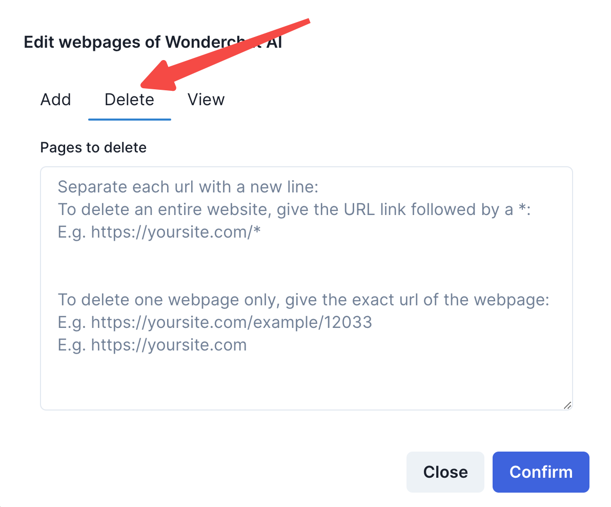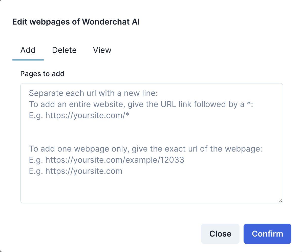 Adding or deleting single webpages is very useful when you have a specific webpage you want to update or delete, as you may have published a new post on your blog that you want the chatbot to read immediately.