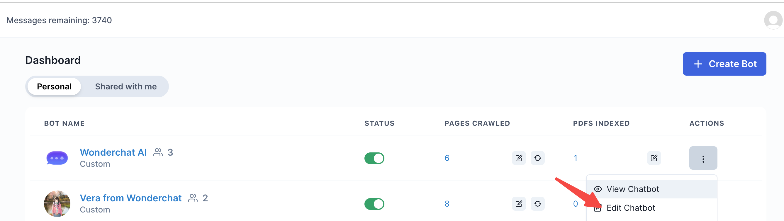 2. Go to “Create a Chatbot” or “Edit Chatbot”