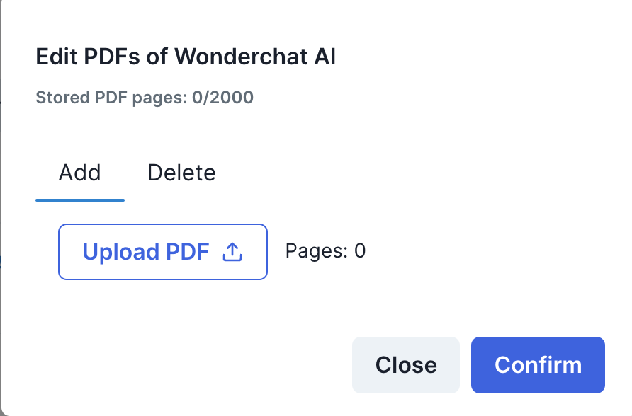 Wonderchat allows you to create chatbots that store knowledge from not just your PDF files but also your website links.