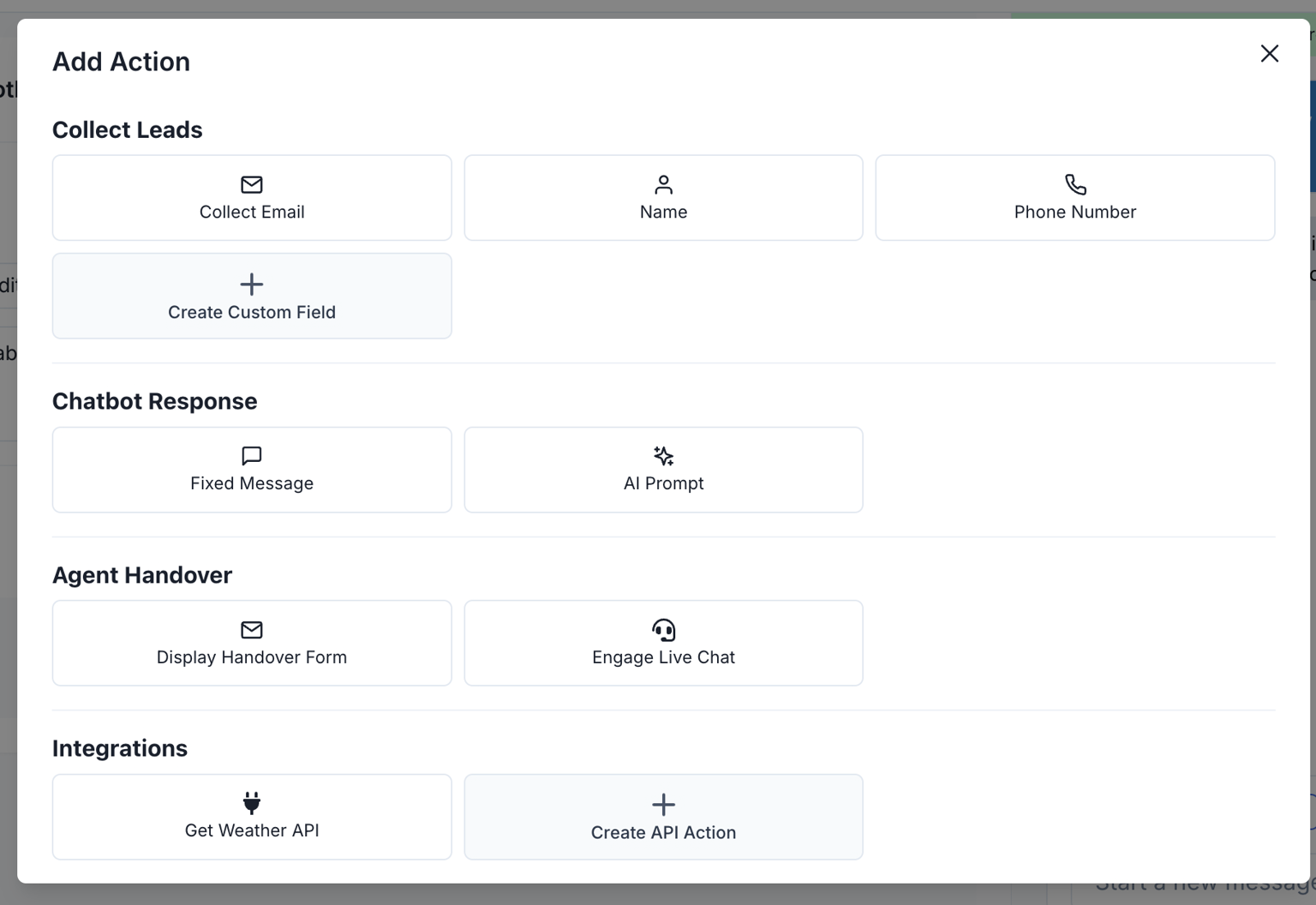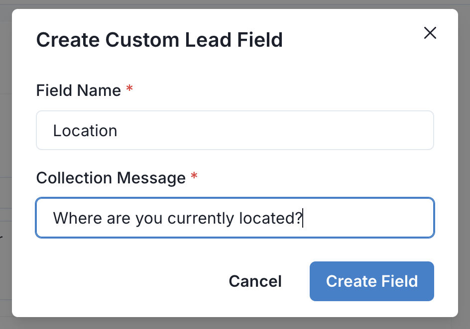 - Now that we have defined the trigger for the workflow, we can define a series of actions to take. For this workflow, we want to first Collect the location of the user, so we can click on Add your first action and create a new custom field called Location