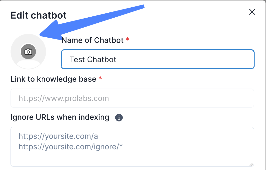 The first step to styling your chatbot would be to pick a suitable profile photo. To do so, you can go to “Edit Chatbot” and click on the profile icon to upload a photo.