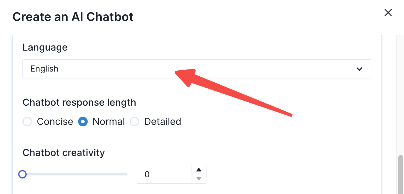- However, if you wish for your chatbot to speak in a non-English default language, you can also switch the base language to the language of your choice.