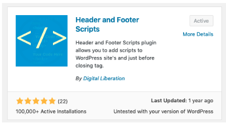 - Install the "Header and Footer Scripts" plugin, then click Activate.