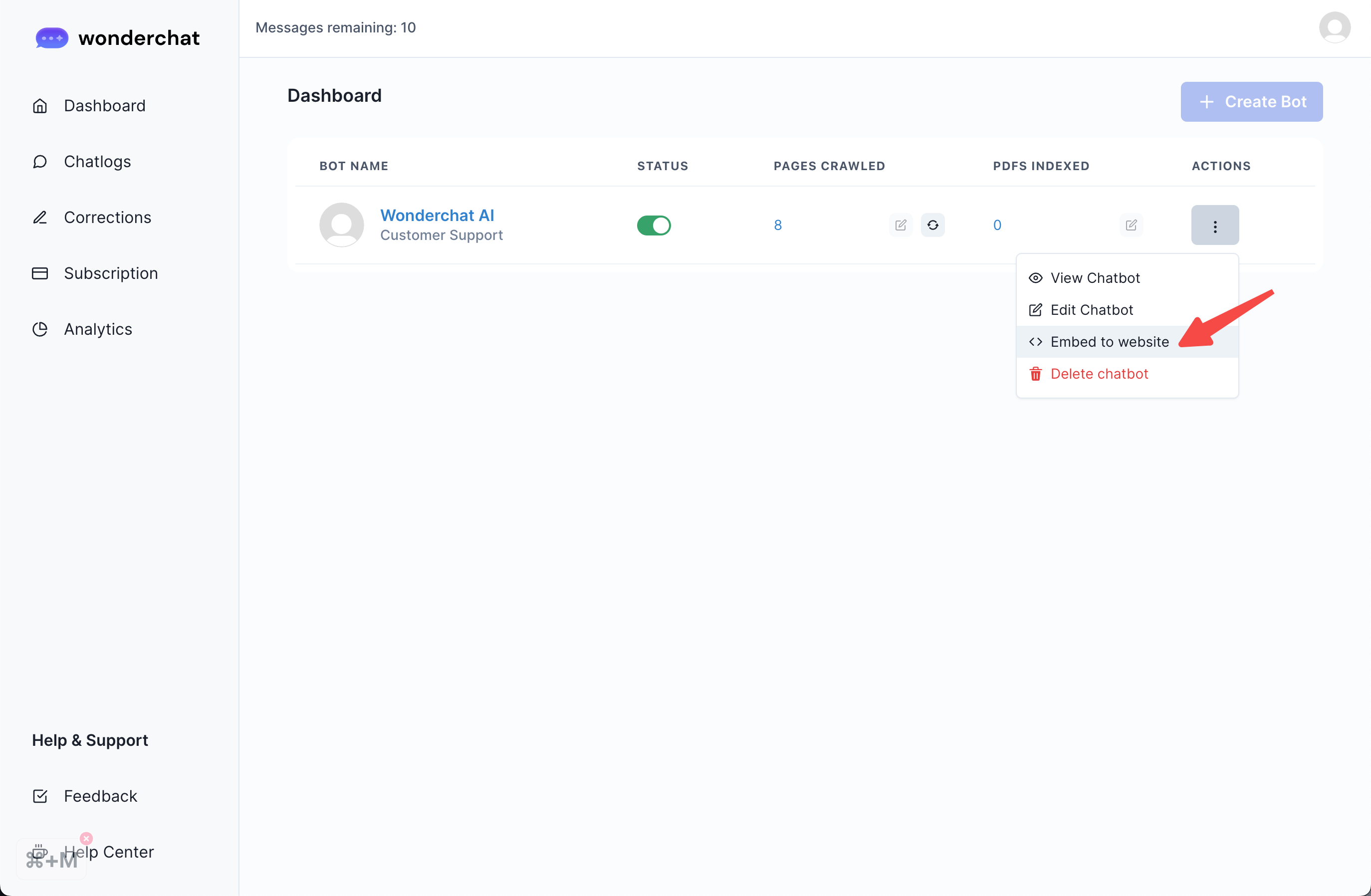 You can also embed your Wonderchat bot as a chat interface within a page.