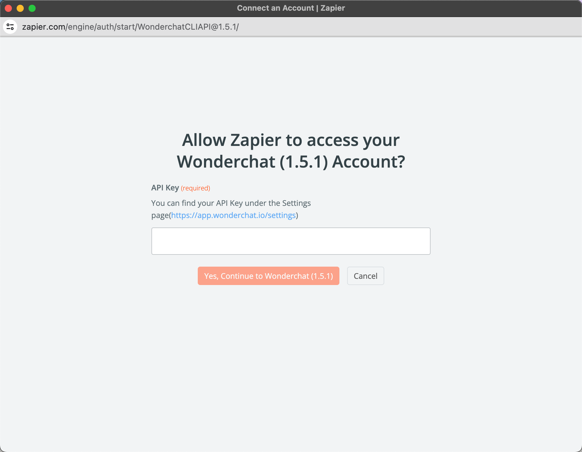 - Connect your Wonderchat credentials to Zapier